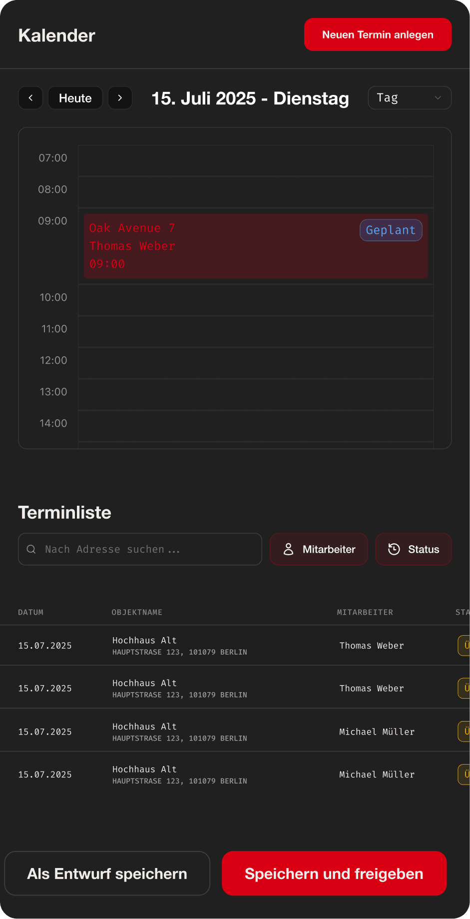 Lückenlose digitale Dokumentation aller Zustände und Maßnahmen.